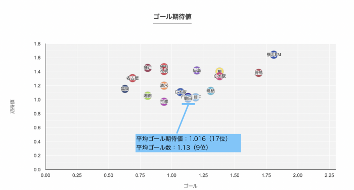 ゴール期待値(xG)は低いが、ゴール数がそこそこ多い