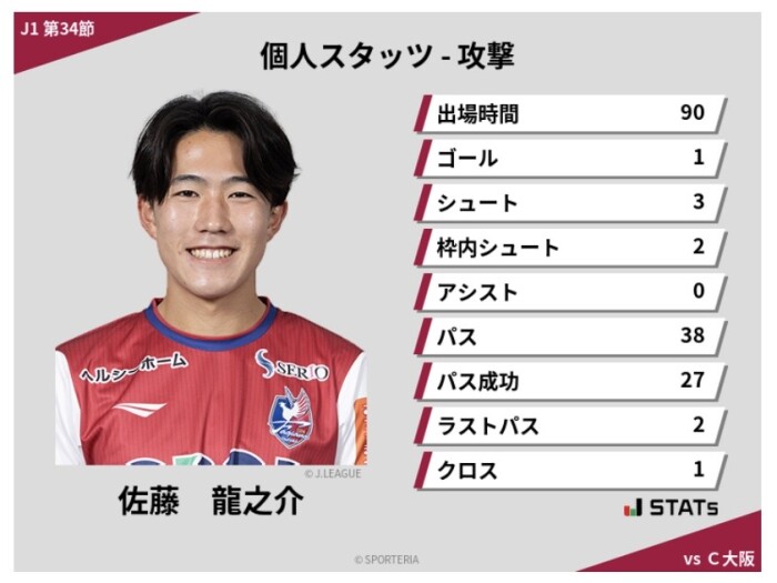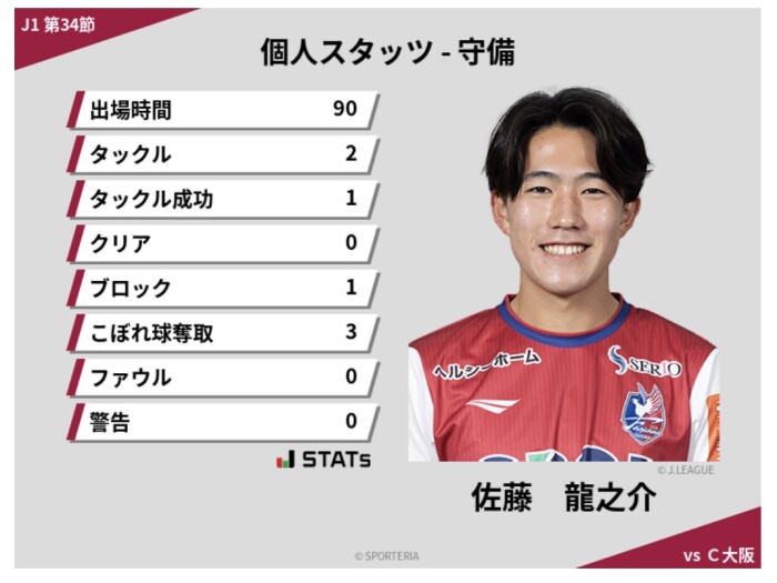 これらのデータから分かるように、佐藤選手はゴールを決める力と、チームのために一生懸命守る心の両方を持っている欠かせない存在です。