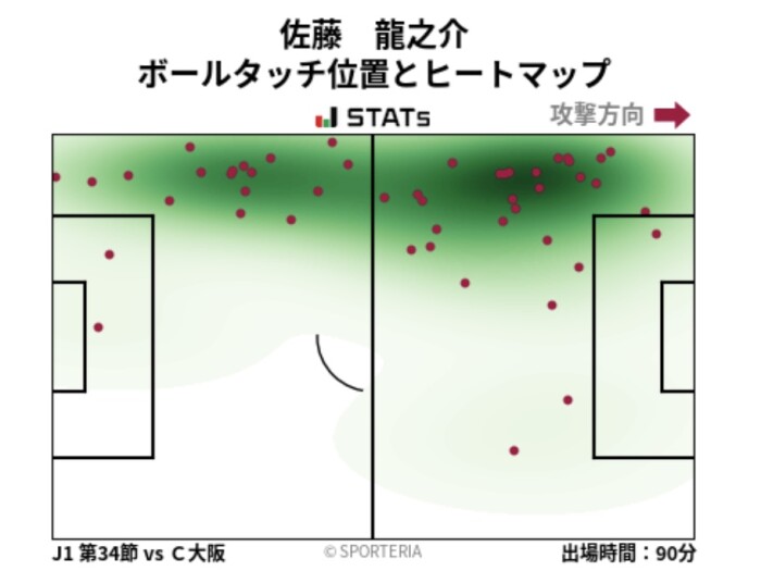 さらに、佐藤選手がどこでアクションを行ったかを見てみましょう。
