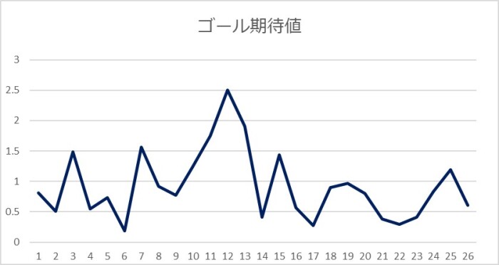 もちろん、ゴール期待値は1つの目安であるが、得点の期待値が0点台ということは引分はあっても勝てないことを意味している。