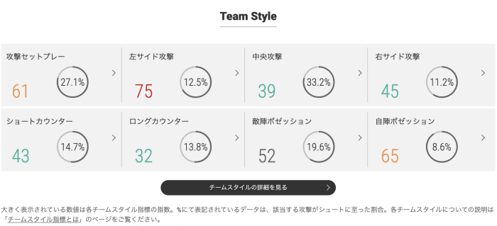 チームスタイルはざっくり言うとそのチームの攻撃回数を指数化(偏差値化)した値になります。