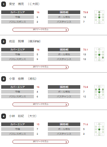 ランキング系の数字だと攻撃の選手が目立ちますが、守備や奪取のポイントにも注目してもらえるのは嬉しいです✨