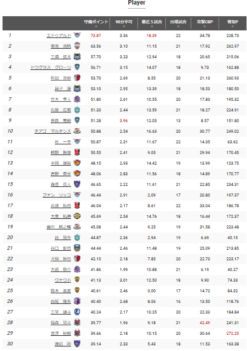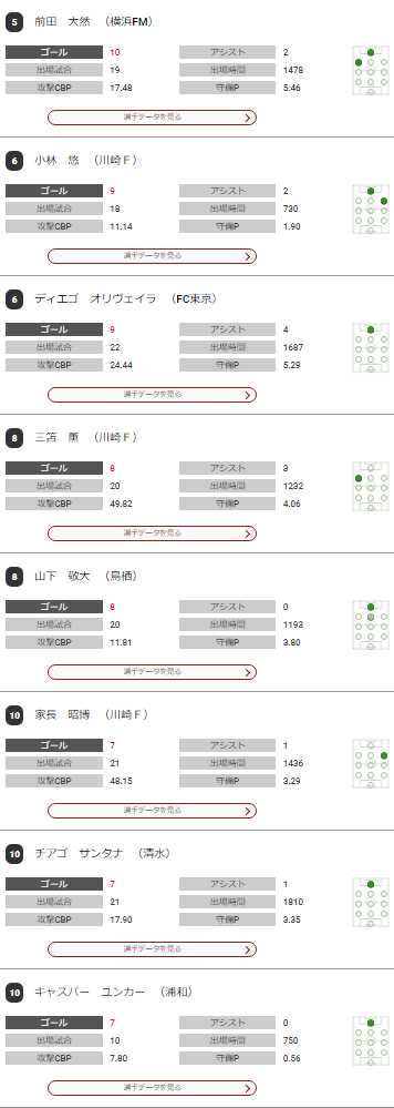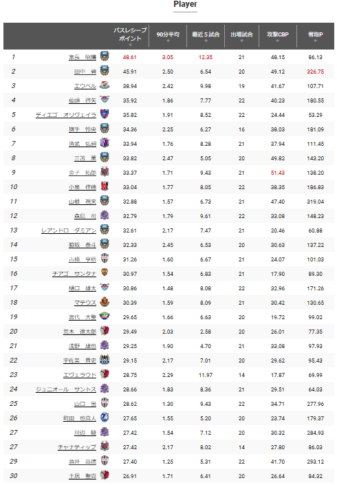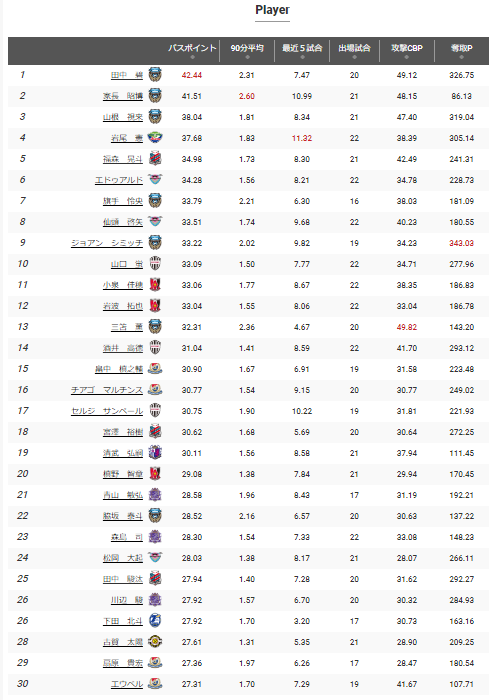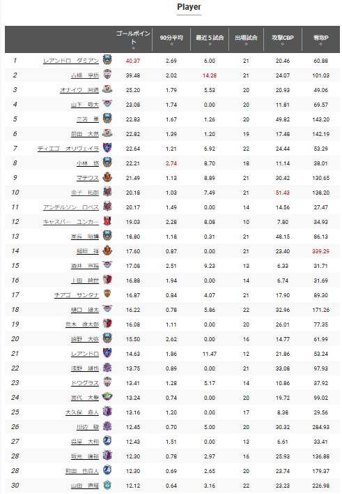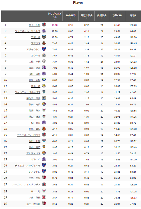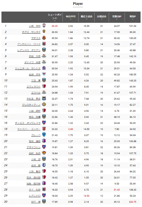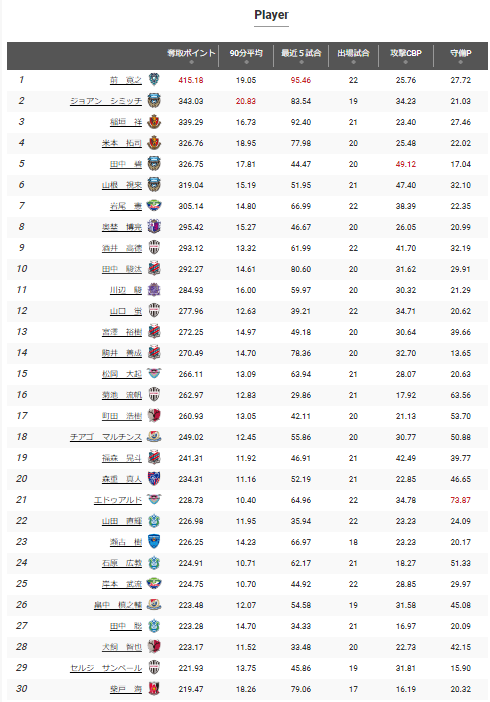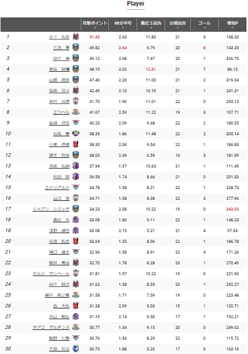 選手データ 2021 Ranking 2021.7.31 update https://www.football-lab.jp/summary/player_ranking/j1/?year=2021
