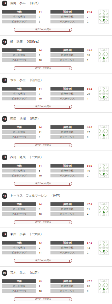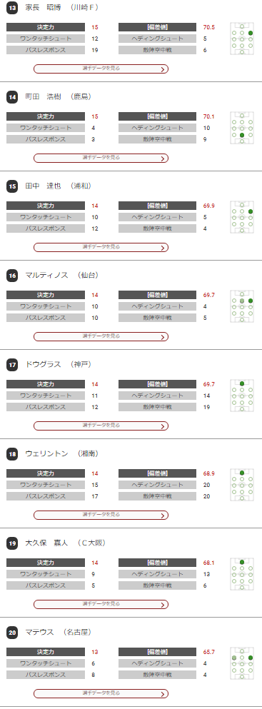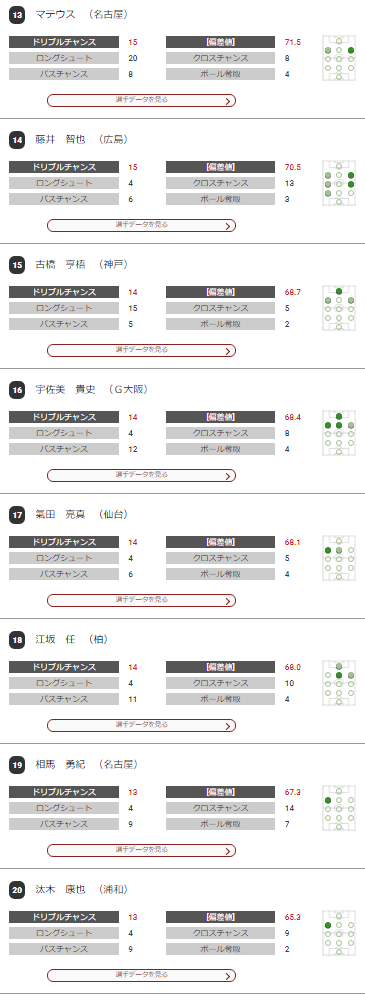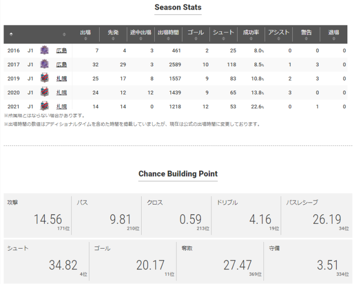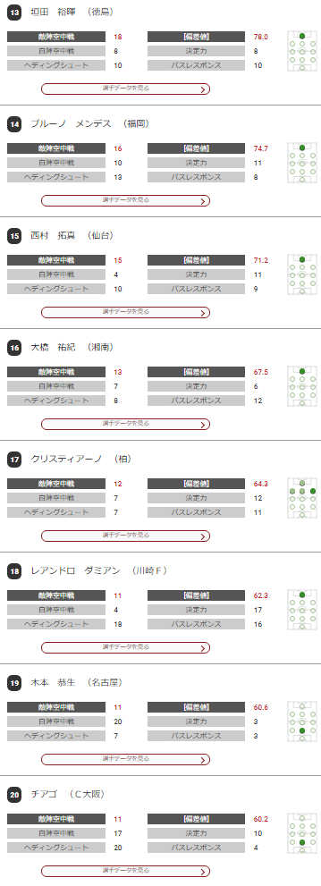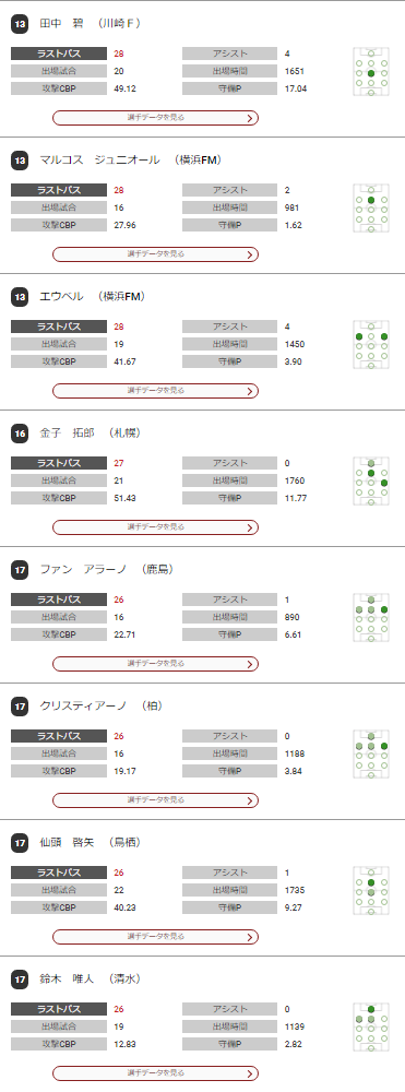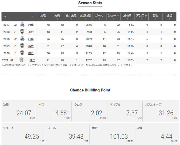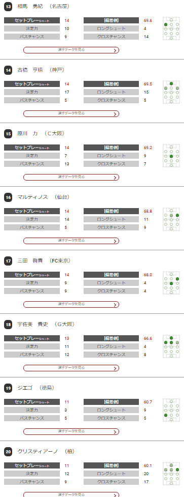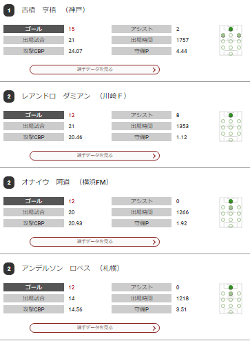 選手データ 2021 Ranking 2021.7.31 update https://www.football-lab.jp/summary/player_ranking/j1/?year=2021