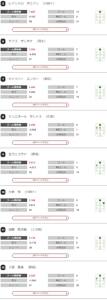 2021 【J1】前半戦の戦い、選手個人のデータを見ていく。Football LABからデータを引用
