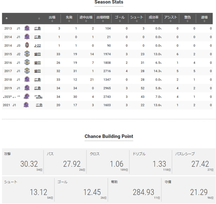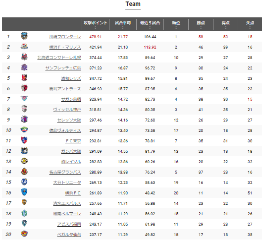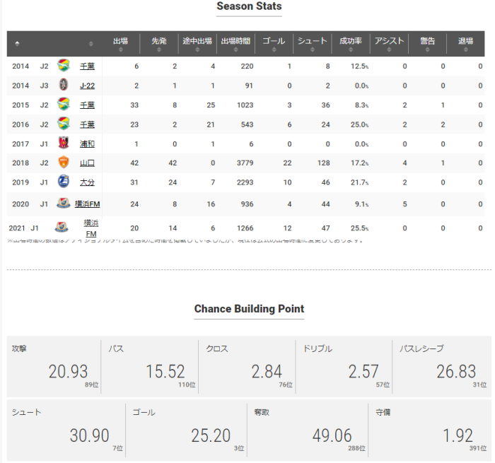 2021 J1 チャンスビルディングポイント ランキングhttps://www.football-lab.jp/summary/cbp_ranking/j1/?year=2021