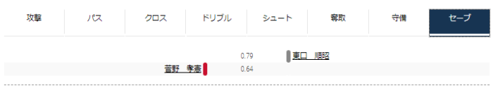 GK東口のシュートセーブが目立った試合だった。GK菅野のセーブも少なくはない。