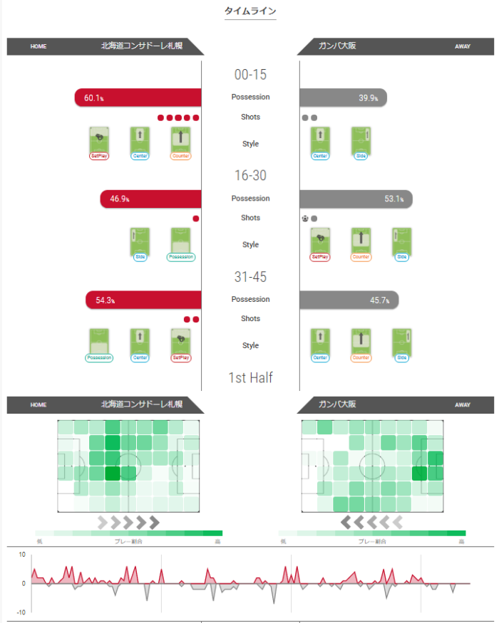 タイムラインの波を見ても前半にチャンスを多く作り、後半でも多くのチャンスを作っていたのが見て取れる。