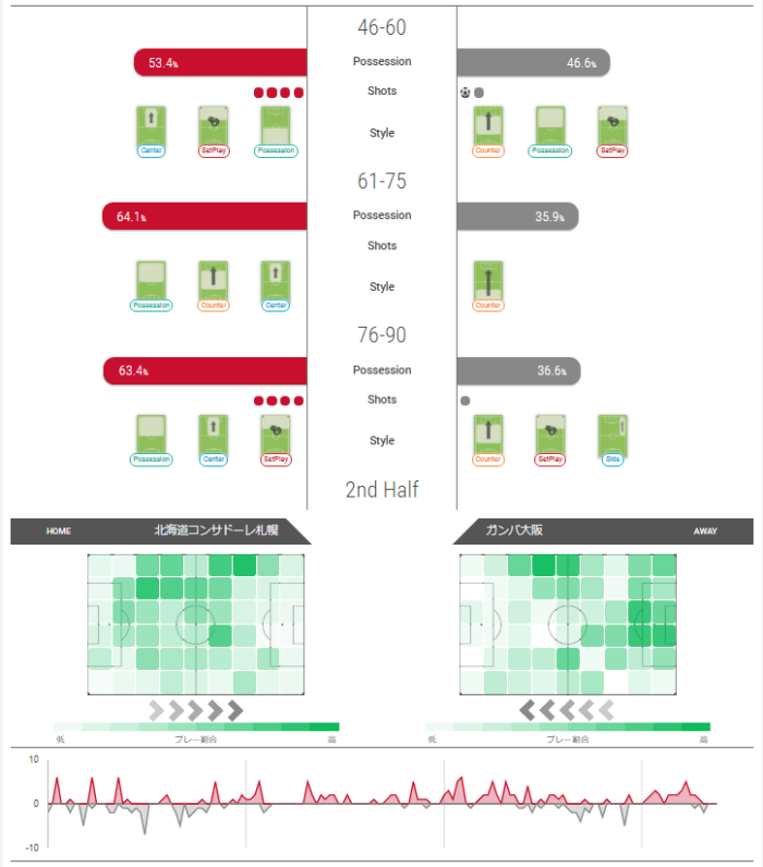 札幌は一番上の段と2段目の色が濃いので、かなりゴール前に迫れていたことが分かりますね。