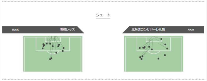 左からのシュートが多く、ミドルシュートも多いコンサドーレ
