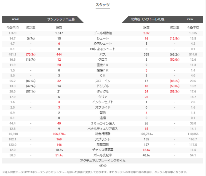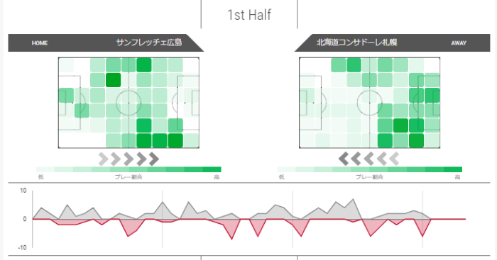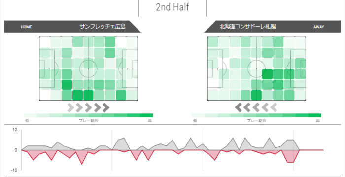 コンサドーレがほぼ常に広島を上回っており、75分過ぎからの広島のシュートも耐えきった。