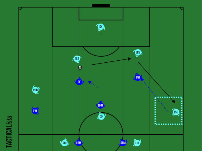 そうなってしまった要因の一つが2トップ(正確にはCFのレオセアラ&OMFのマルコスジュニオール)のチャレンジ&カバーである。