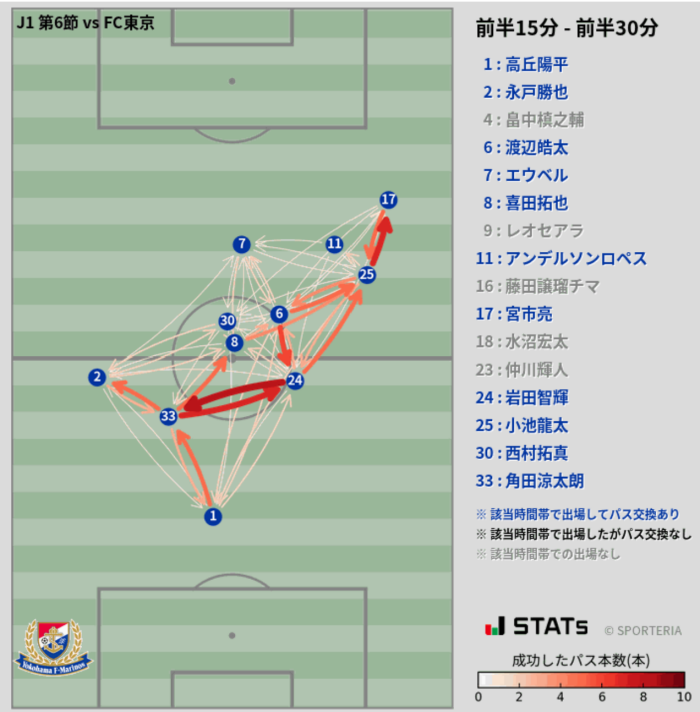 その結果、横浜FMは前半のほとんどの時間帯でアルベル監督の手のひらの上で転がされることとなったのである。