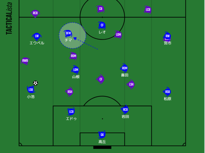 今節スタメン出場したエドゥアルド&岩田はその能力があまり高くなく、サイドでプレスに嵌められてしまう原因になってしまっていた。