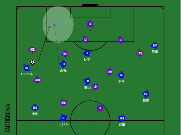 普段横浜FMが採用している4-2-1-3であればトップ下orトップ下がポジションチェンジをしながら積極的に顔を出せている。