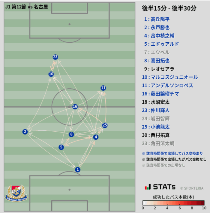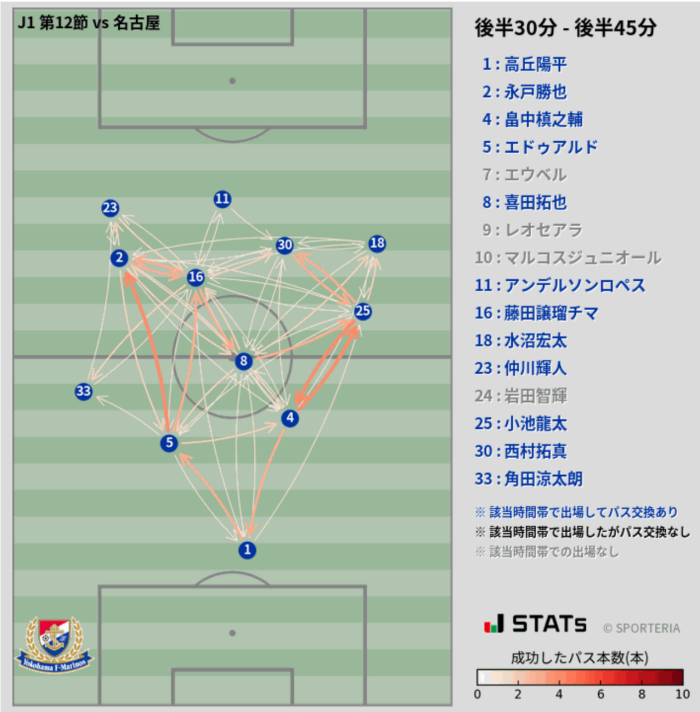 それにより、横浜FMのプレス回避も上手く回って押し込む時間が増えていった。