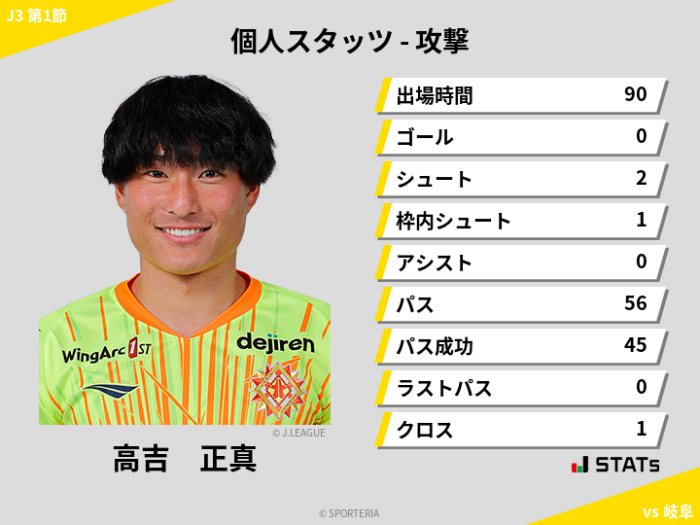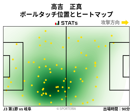 中盤は井澤が上がり目でゲームメイクし、高吉が攻守のバランスをとっていた。高吉は控え目な動きに見えたので、今後は得意のロングフィードを使った展開力を発揮してくれることが期待される。