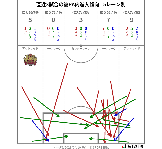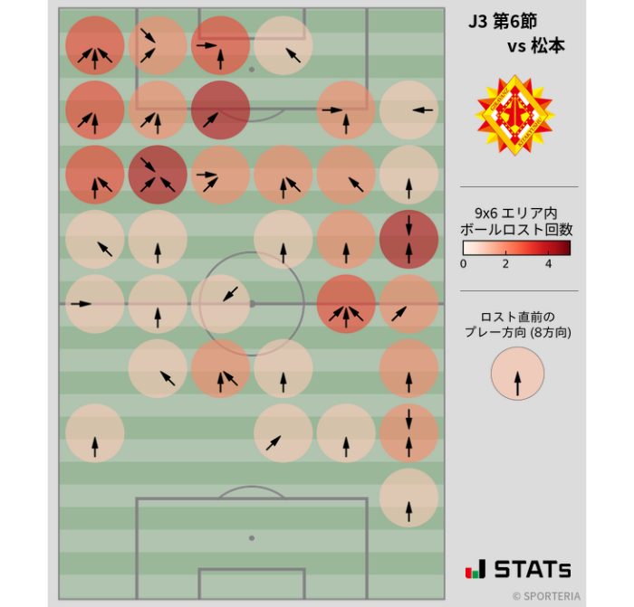 ボールロスト位置を見ると、自陣での前方パスをカットされているのが個人的に気になりました。