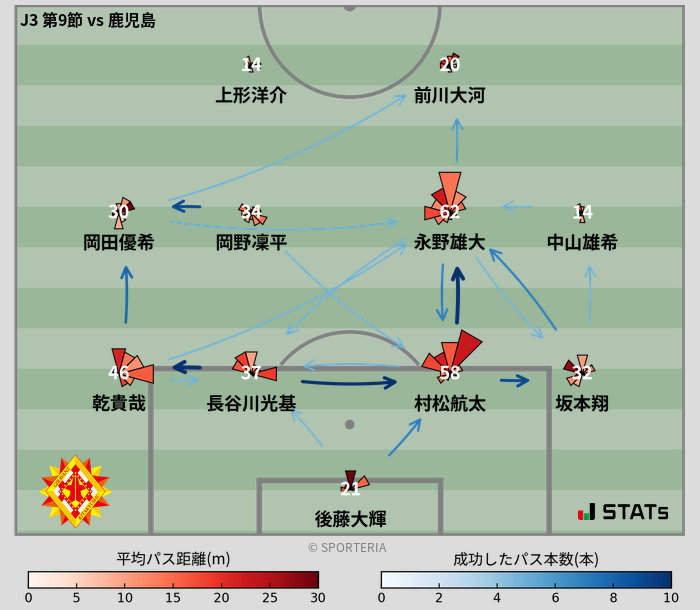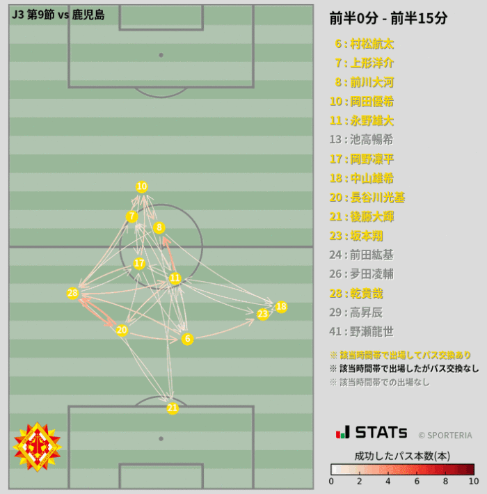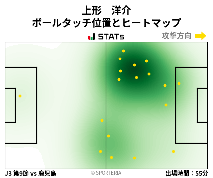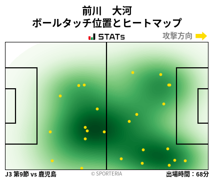 今節は前川が受けて大きく展開するシーンが多く、ゴール前には上形しかいないシーンが目立った。それでは相手も対処が楽なのでゴールは難しい。