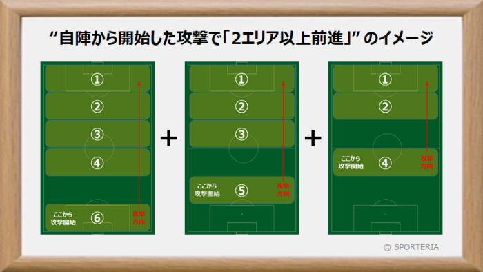 このように、⑥⑤④どのエリアから開始した攻撃でも、2エリア以上前進した割合が向上しています👏