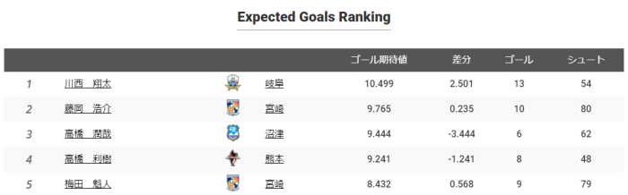 しかし、シュート単位で評価する「ゴール期待値」「被ゴール期待値(相手チームに与えたゴール期待値)」を見ると、