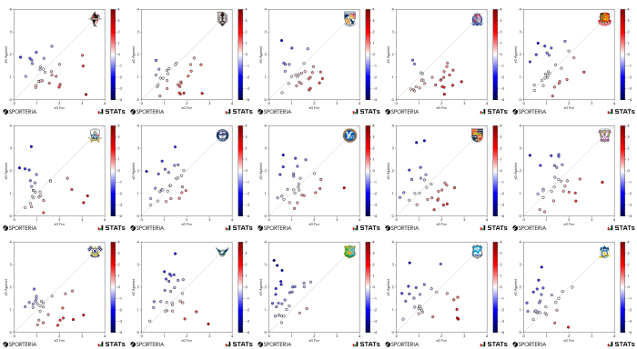 各チームの試合単位でのゴール期待値/被ゴール期待値のマッピングありがとうございます。