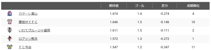 このように右下にマッピングされる試合の数では1位の熊本と2位の岩手を上回っており、昇格していても不思議ではなかったことが分かります💡