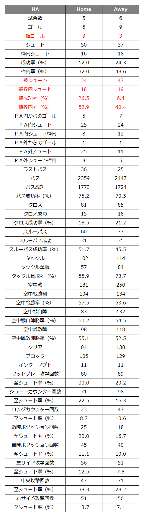さて、そんなツエーゲン金沢のスタッツをホーム/アウェイ別に出してみました。