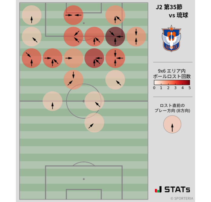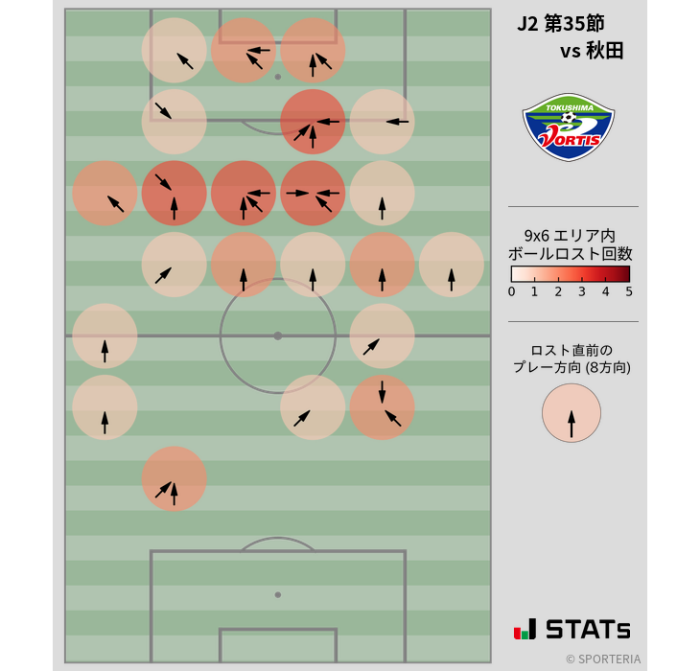 35節vs秋田 徳島のボールロスト位置(図=figure:SPORTERIA提供)