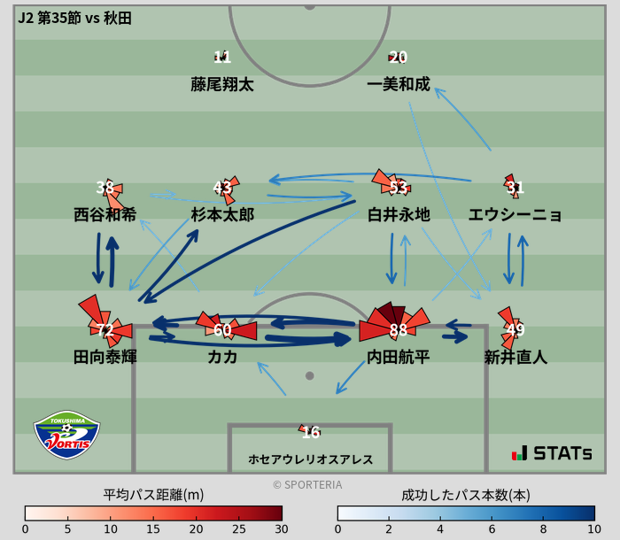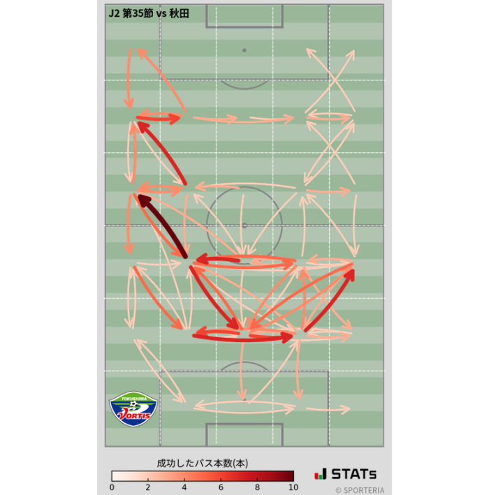 35節vs秋田 徳島のエリア間パス図(図=figure:SPORTERIA提供)