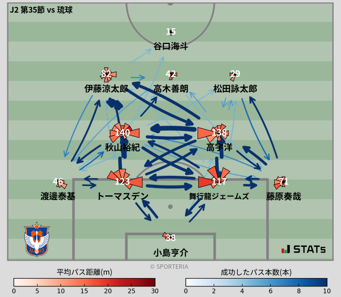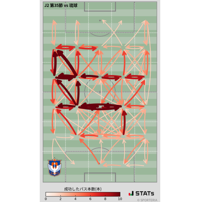 35節vs琉球 エリア間パス図(図=figure:SPORTERIA提供)