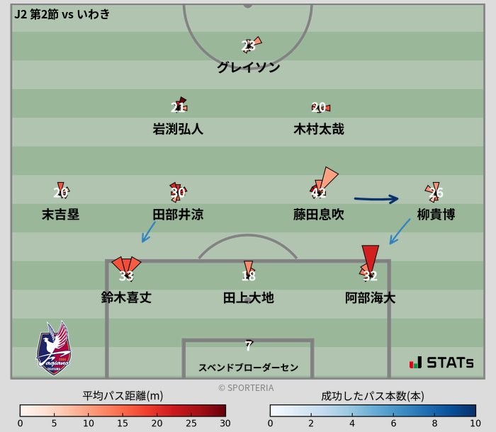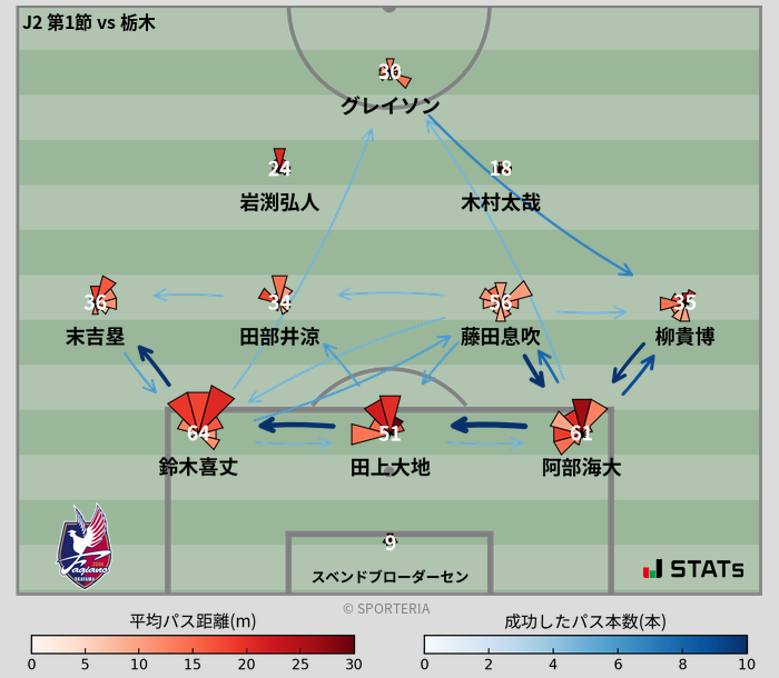 9グレイソン 選手を抑えられた一方で、サイドではしっかり形を作る事ができていた事を証明できるデータと言えそうです。