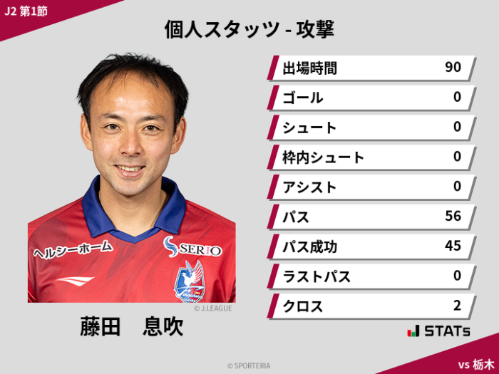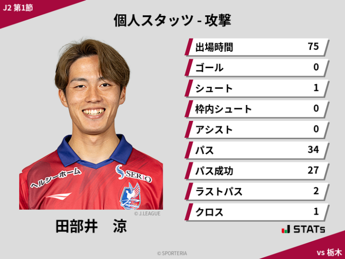 第1節 栃木戦:14田部井 涼 選手&24藤田 息吹 選手:攻撃スタッツ(図=figure:SPORTERIA提供)