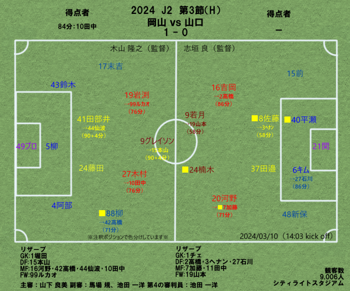 だからこそ、退場は山口としてはかなり痛かった。次節出場停止であるのでは、山口としては、かなり痛手だが、9グレイソン 選手対策された岡山が違う形を模索した通り、山口の志垣 良 監督であれば、何かしらの手段を用いて、戦術の幅を広げて行くことは間違いない。