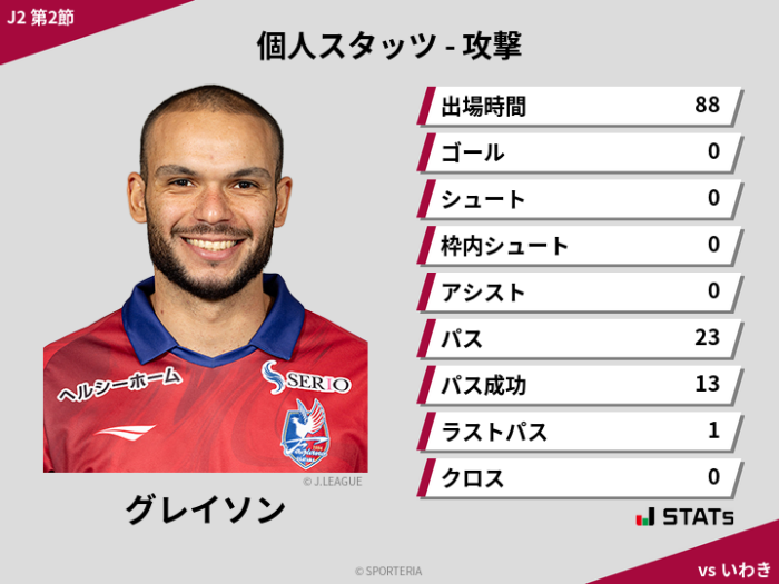 栃木戦→いわき戦→栃木戦:9グレイソン選手:攻撃スタッツ(図=figure:SPORTERIA提供)
