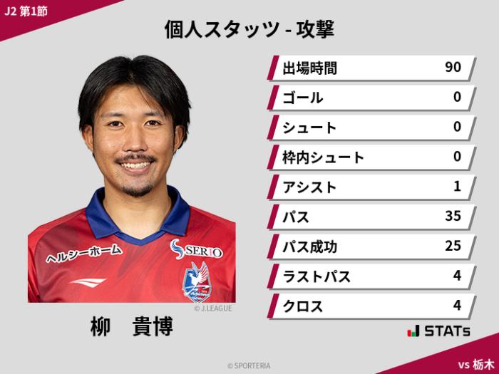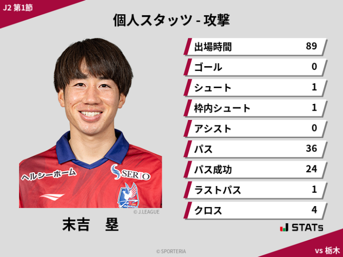 1節 栃木戦:17末吉 塁 選手 & 88柳 育崇 選手:攻撃スタッツ(図=figure:SPORTERIA提供)