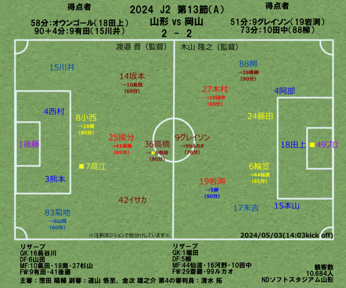 一方で、山形も岡山のWBがSBにならなかったので、深い位置にスペースがありました。