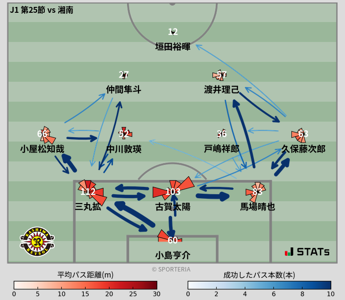 J1 25節vs湘南戦 GK:25番 小島 亨介 選手(個人スタッツ‐GK)
