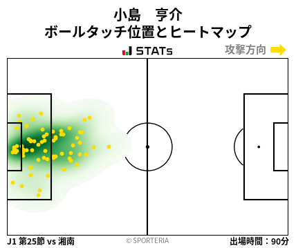 J1 第25節vs湘南 ボールタッチ位置とヒートマップ(GK:25番 小島 亨介 選手)