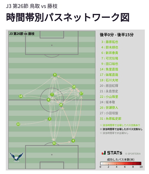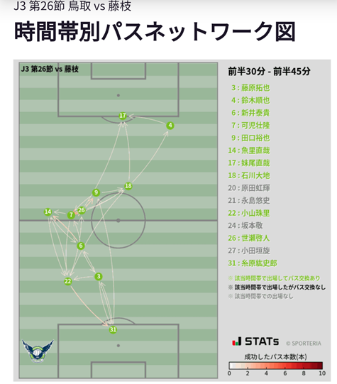 パスネットワーク図でもわかる通り田口選手にボールが集まっています。
