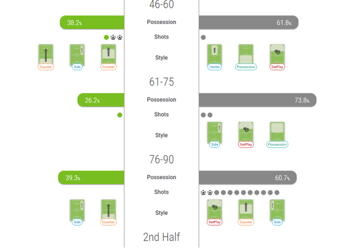 そしてこれがこの試合でのヒートマップ前線から中盤までかなり広い範囲をカバーしているのがわかります。