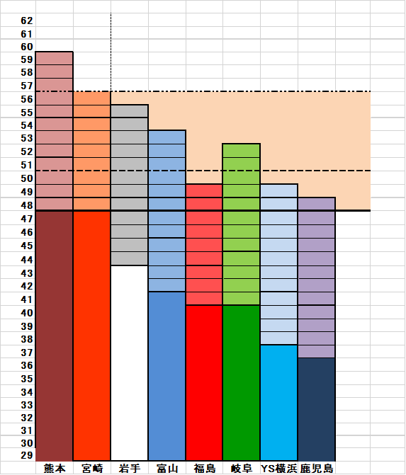 宮崎が勝利すると福島、YS、鹿児島に加え直接対決の岐阜も昇格の可能性が消えます。