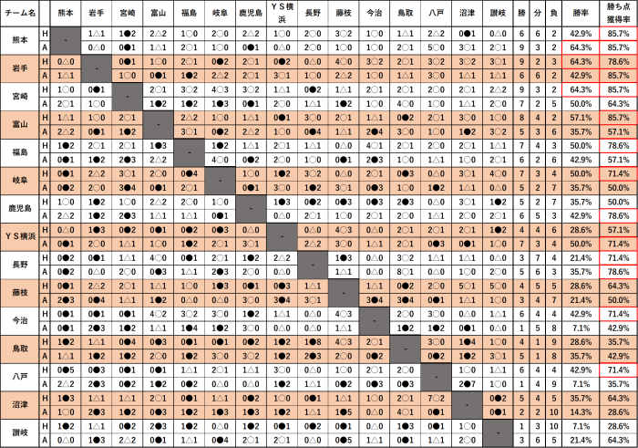 まずは下図はJリーグデータサイトから対戦表を引用しました。