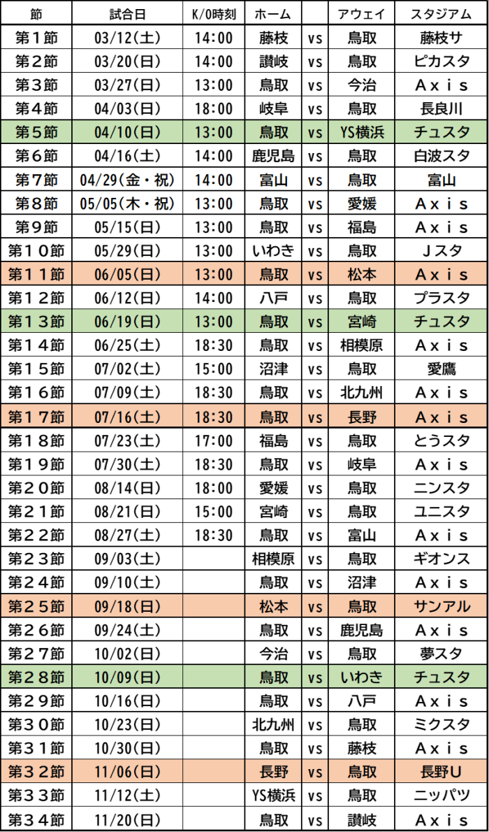 また同県ダービーは前半戦は第7~11節に各1試合、後半戦は第24節に2試合と第31節に信州ダービーがありお互いの順位でどのような兼ね合いになるのか楽しみです。