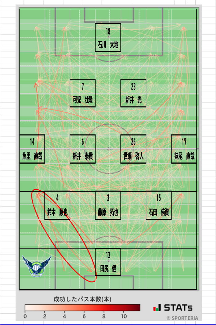 今シーズンこの線の色が薄くなり、サイドチェンジなどのパス本数が増え矢印の色が濃くなることが期待されます!!