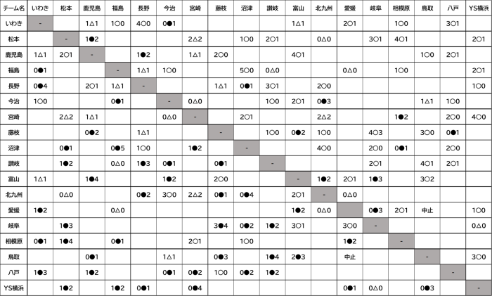 1敗は4チームですが、負けているチームもいわきは今治、松本は鹿児島、鹿児島は長野、福島はいわきとまだまだ中位のチームの巻き返しが考えられます。