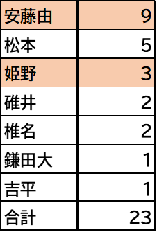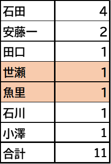 色が変わっている選手はクロスの成功があった選手。その他の選手はうまくつながらなかったということになります。クロスの成功数は鳥取は2本、富山は5本です。