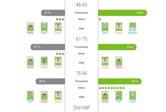 ヒートマップは安藤選手の上りがあり、少し下がり目の位置に。安藤選手にもう少し守備に追わせることができると結果が変わっていたかもしれません。