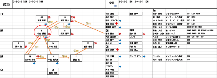 オフに話題が多かった岐阜戦です。まずは昨シーズンからのチーム動向ですが、フィールドプレーヤーに入れ替わりが多くJ1、J2で活躍した選手が新加入しました。