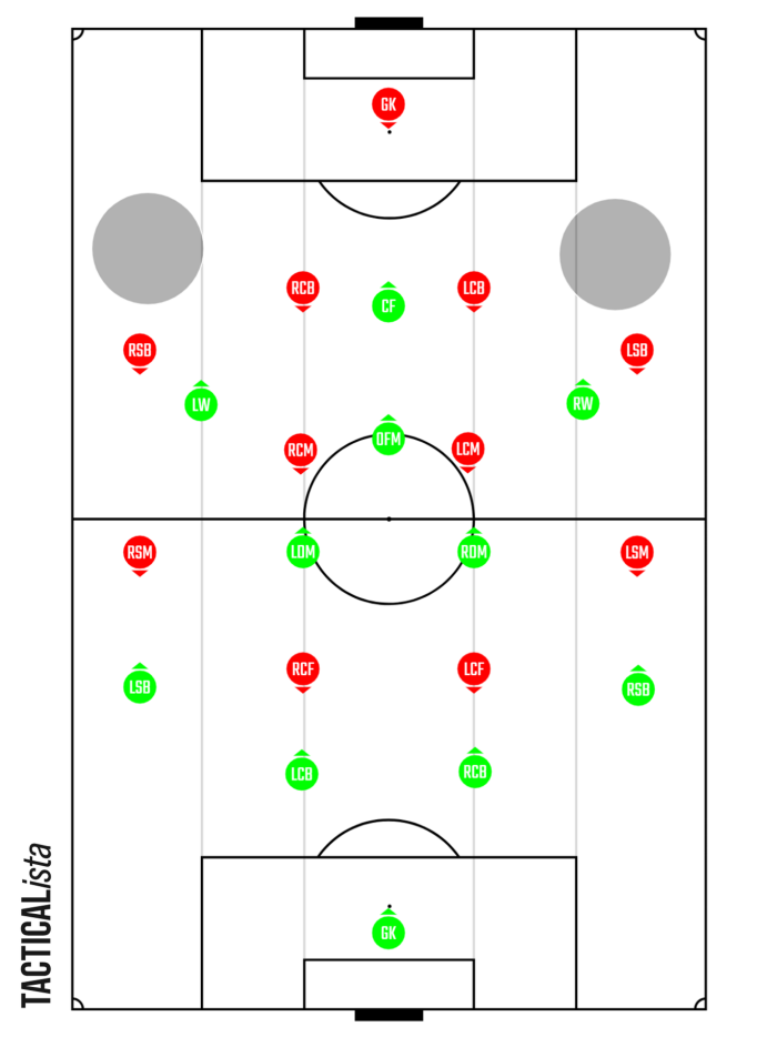 また福島戦の時は右SHは石川選手でしたがこの時も右サイド深くの位置にボールタッチが無く十分に攻めていけていません。